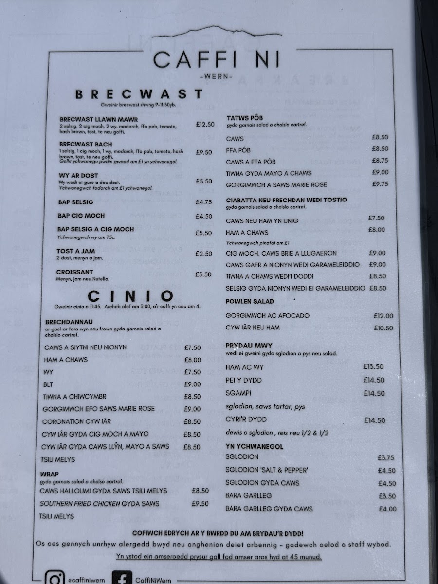 Welcome to Caffi Ni, a charming café nestled in Wern, Pwllheli, renowned for its delightful menu and warm ambiance. This eatery stands out with its hearty breakfast offerings, including the generous Large Full Breakfast and specialty Bacon Bap. Patrons rave about the café's delicious dishes, with a focus on fresh ingredients and sizable portions.